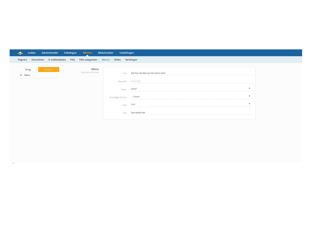 - You can change the order of a menu by dragging an item with the arrows on the right.