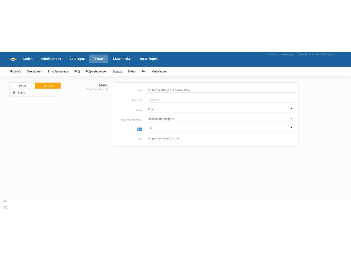 - Go to 'texts' > 'menus'. For webshops go to: 'settings' > 'menus'