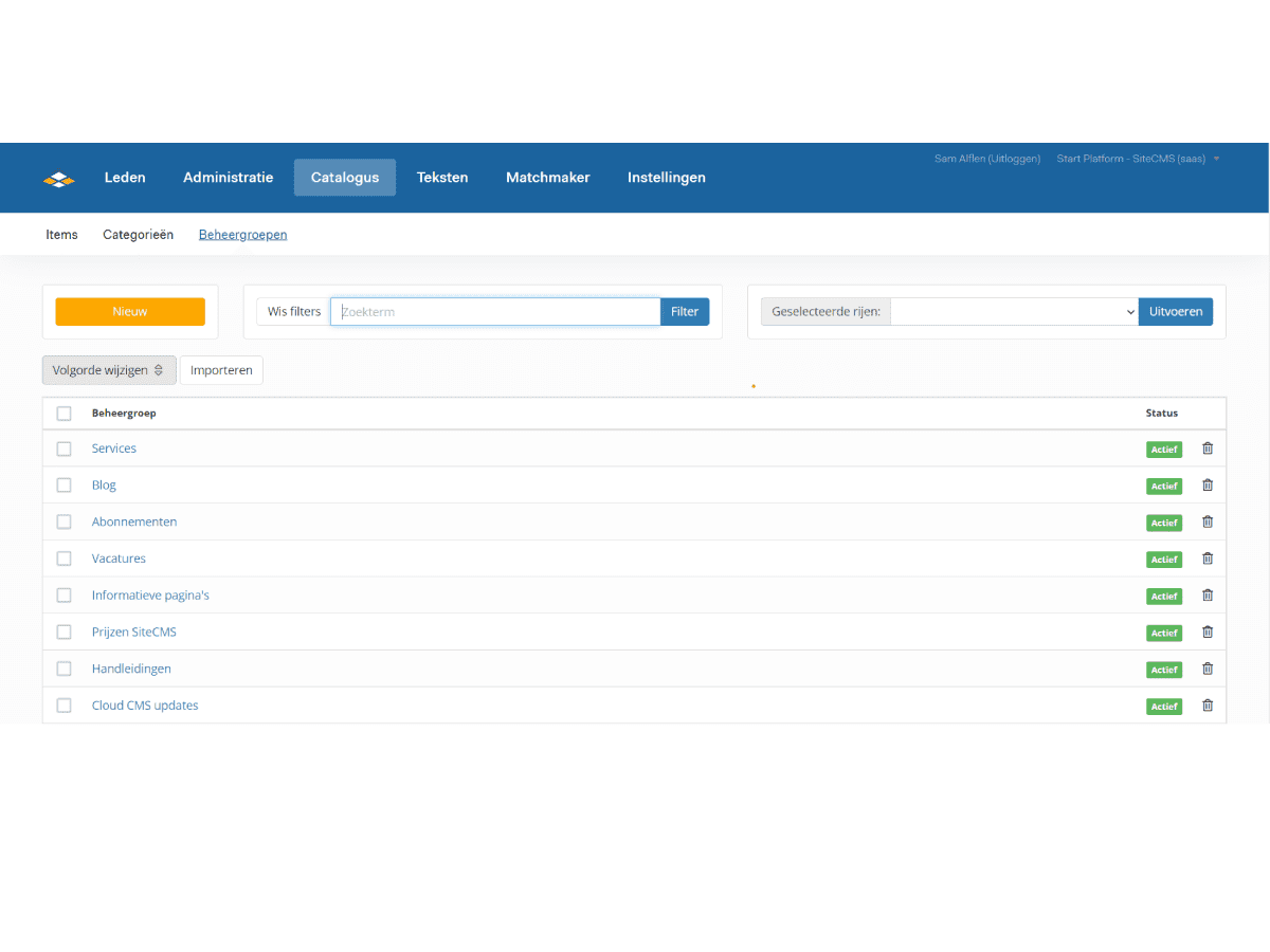 For each management group, you can set whether the underlying items may be displayed on the homepage. These items will always be displayed under the content blocks of the homepage. When you display multiple management groups on the homepage, it is possible to change the order via SiteCMS, as follows: