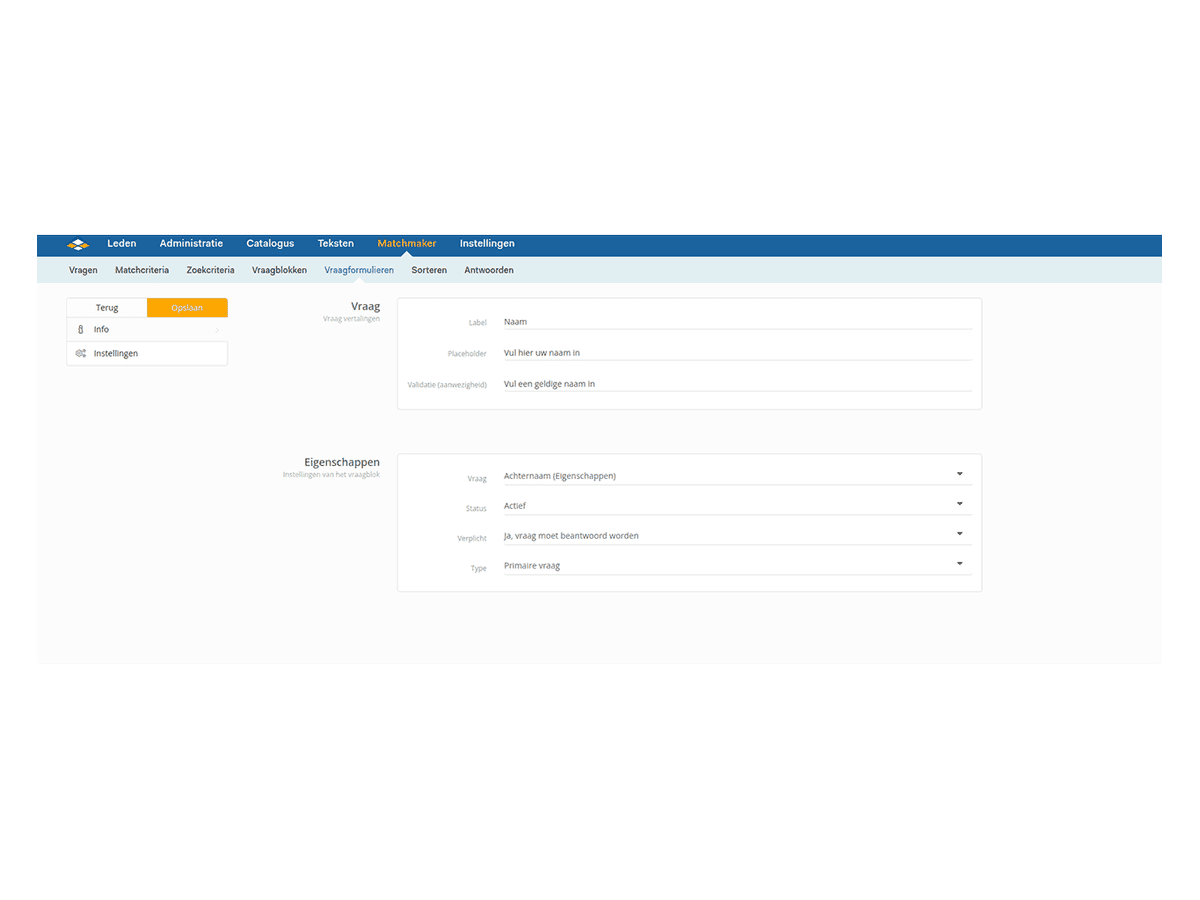 Tip: A large registration form can be intimidating and may result in fewer visitors registering. Therefore, limit yourself to essential questions here. If you need more information, you can make the questions in the about me group mandatory.