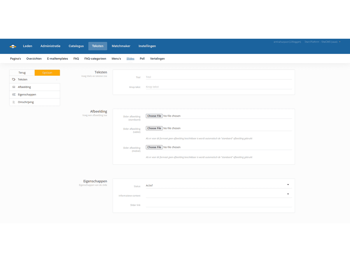 - Open the desired slide by clicking on it (your website may contain multiple slides, but we recommend showing only one) or click on new to create a new slide