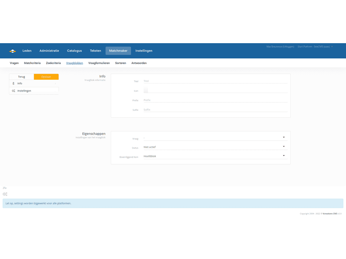 Properties can be displayed in various places on the website. For example, on the profile page, in the search overview, or on a category page. We display these properties with question blocks. These exist for the properties of profiles but also for the properties of items from a management group.