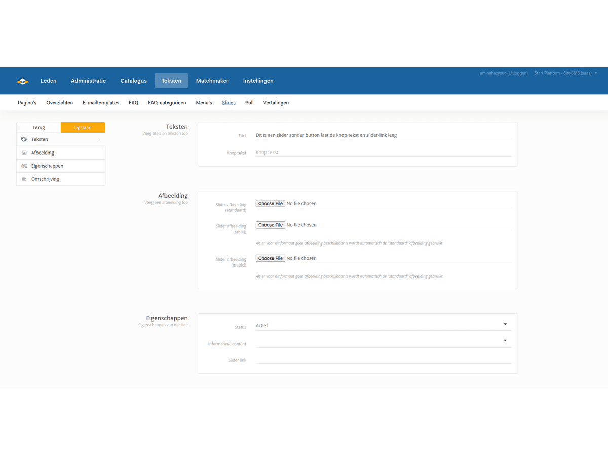 - Go to SiteCMS> Texts> Slides