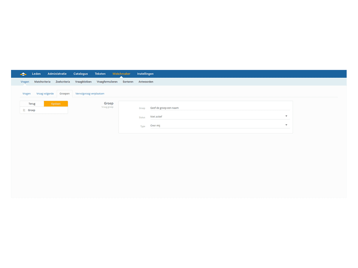 When you have mapped out the profile characteristics with sections, you can enter them via the management system. Let's start by entering the sections. Open the matchmaker -> Groups. Then add the desired sections via a simple screen.